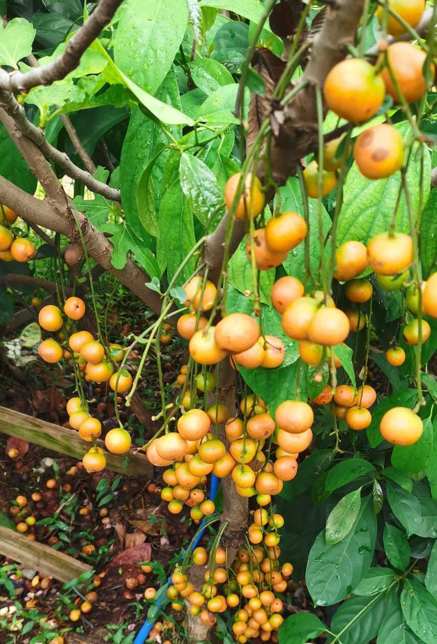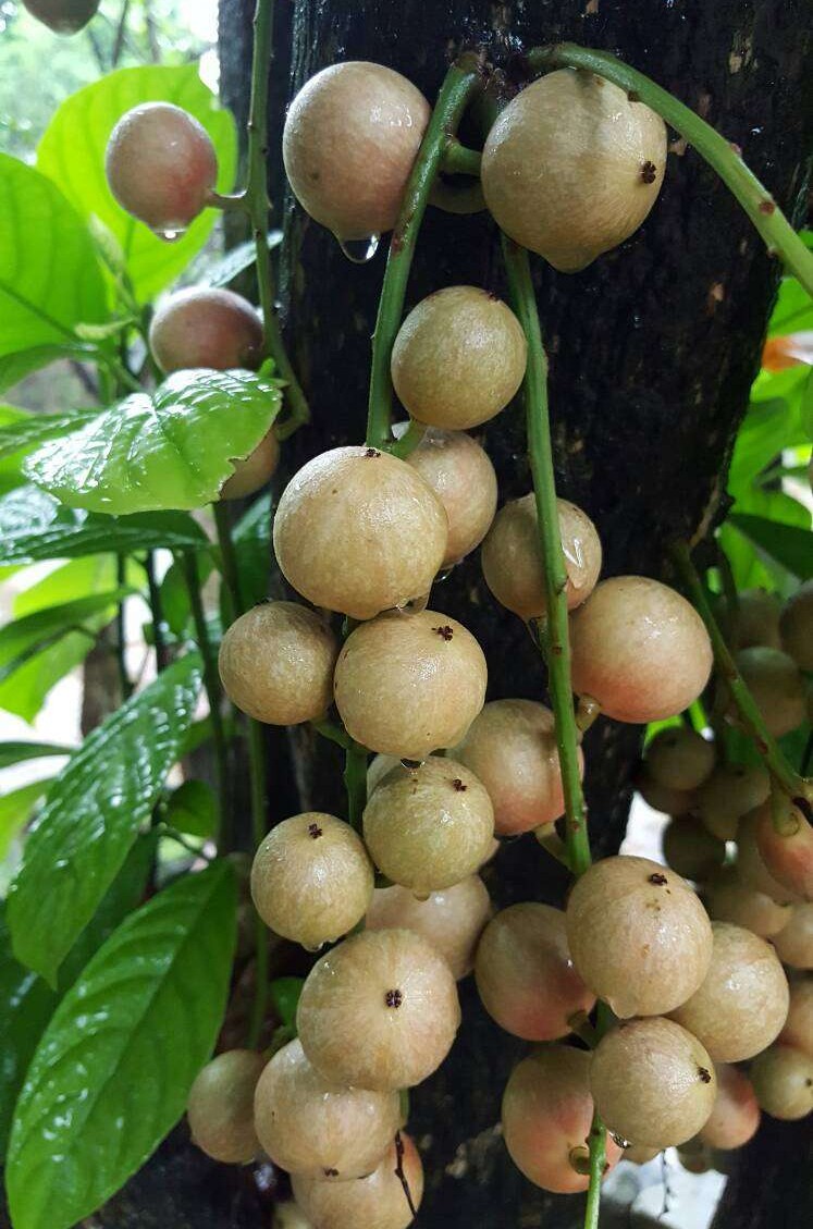 Also known as Burmese Grape, is a tropical fruit native to Southeast Asia. The fruit is round to oval, grows in clusters directly from the trunk, and ripens to yellow, pink, or light purple. Each fruit weighs about 10–25 grams.