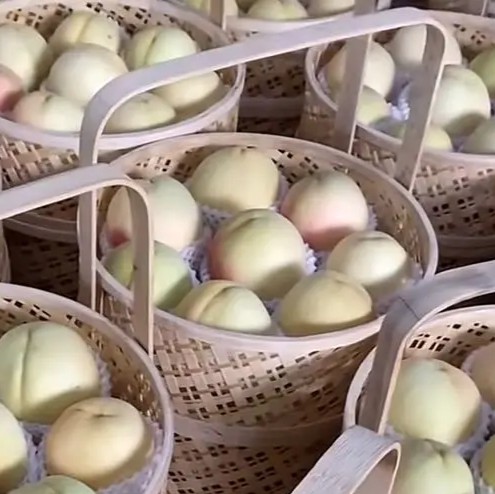 Baili Honey Peach is a premium white-fleshed peach variety. The skin has a creamy-white base color, densely covered with fine fuzz. When grown without bags or with white fruit bags, the ripe fruit displays an attractive blush of red over the white background. The fruit is round and well-shaped, with an average weight of 300 g. The flesh is delicate in texture, and when fully ripe, it is juicy, sweet, and fragrant. It ripens in early August and has a soluble solids content of up to 15%, indicating excellent quality.