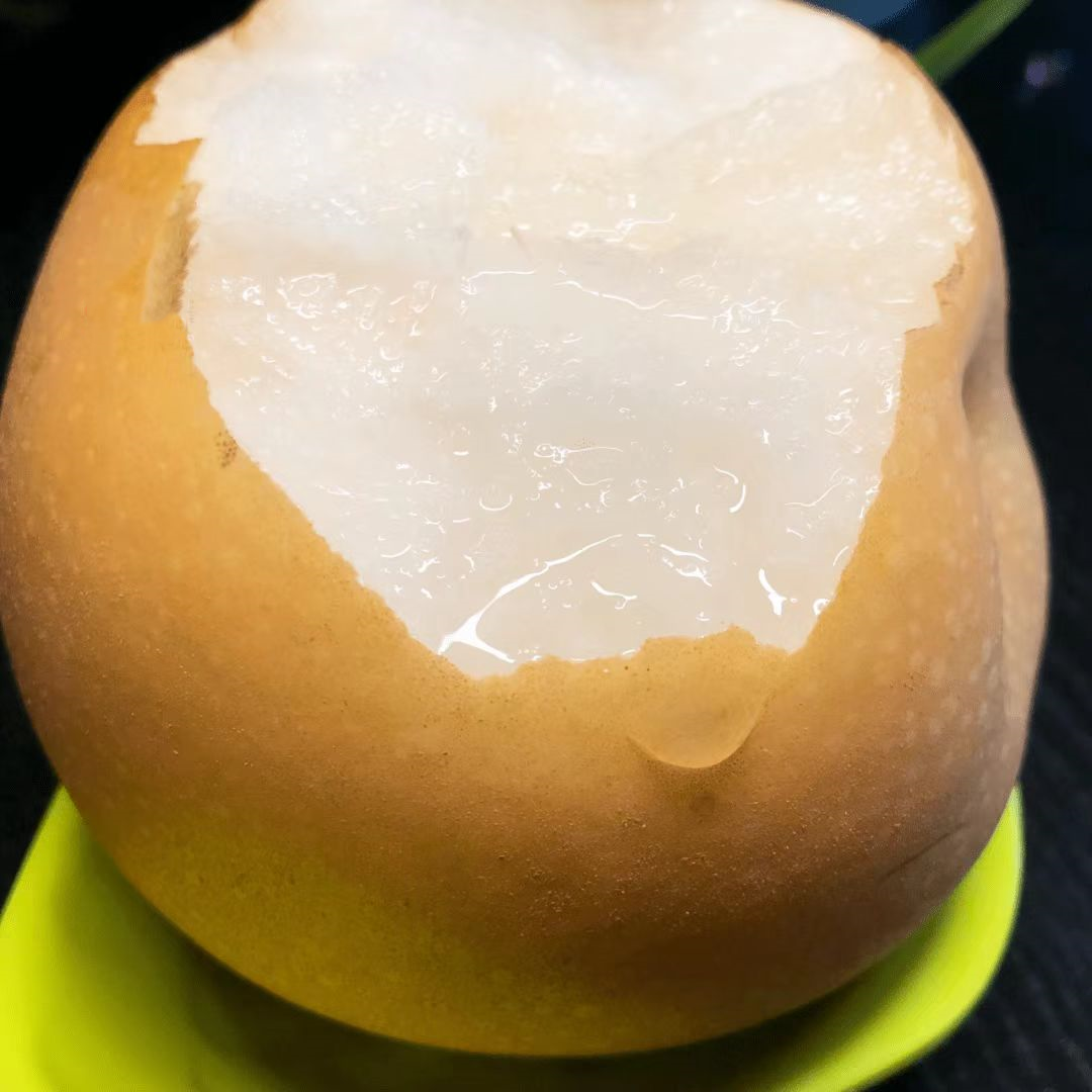 The fruit is well-shaped, with an average weight of 500 grams per pear, and larger fruits can reach up to 750 grams. It is known for its high yield, crisp and sweet taste, juiciness, small core, and lack of residue.