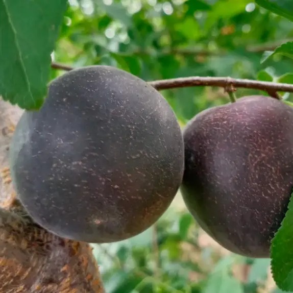 The German Black Apricot is a unique hybrid fruit combining the genetics of apricot, plum, and sweet cherry. It ripens in mid-June, with individual fruits weighing 40–70 g.