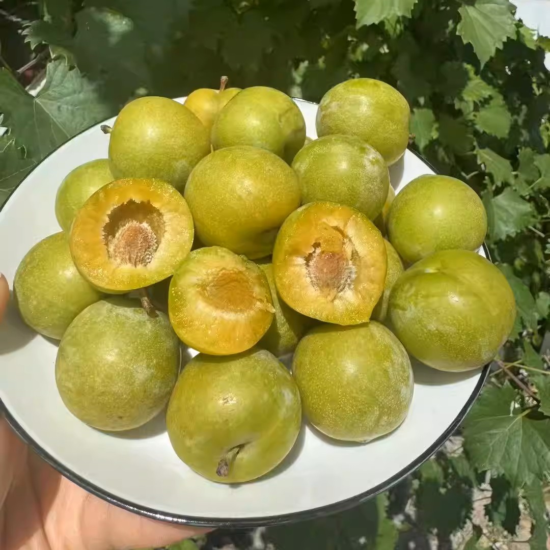 Jinshan Late Crisp Plum is a newly developed late-ripening plum variety selected from seedling trees of Green Crispy Plum. It is distinguished by its well-shaped fruit, crisp and tender texture, balanced sweet–tart flavor, thick natural bloom, and rich aroma. The fruit is freestone.