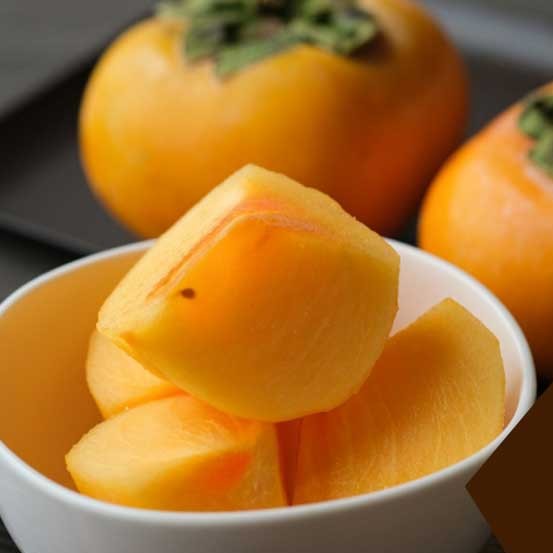 Kijojou is a variety derived from the Matsumoto Wase Fuyu persimmon. The fruit weighs approximately 300 grams, some fruits can grow as large as 800g, and is a fully sweet persimmon. It matures in early November. The fruit has a slightly flattened round shape, with a somewhat dense texture in the flesh. The sweetness is moderate, and there is no astringency.