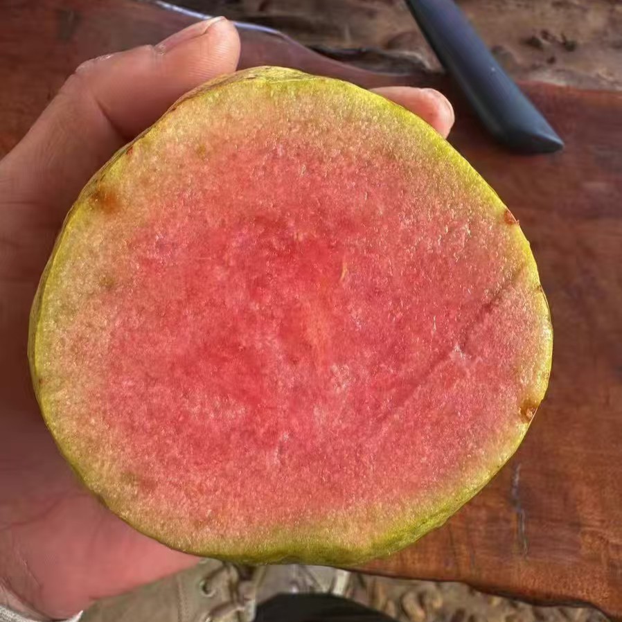 Developed from Red Ruby guava. The fruit is round to oblate, large, generally weighing 500 grams, and up to 800 grams. The flesh is seedless or with few seeds, the fruit is crisp and sweet, fragrant and smooth, with strong antioxidant capacity. The fruit is cut and placed for many days without being oxidized, making it the best among guava.