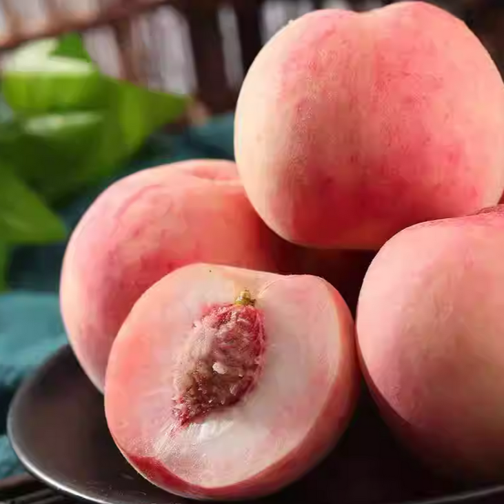 Suli Peach ripens in early July, with flesh that is crisp like a pear, a rich honey-like sweetness, and an intense, lingering aroma. It has SH-type flesh, a white base color overlaid with a pink blush, giving it a bright and attractive appearance. Average fruit weight is about 300 g, with large fruits reaching 500 g. It can remain on the tree for about 20 days without softening, making it an outstanding mid-season peach variety.